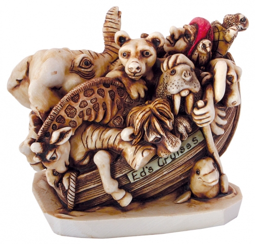 Ed has been desirous of adventure, so our hapless explorer, who bears a strong resemblance to Master Carver Peter Calvesbert, has returned to the African wilds in “Ed’s Safari V”, the fifth Small Treasure Jest in the “Ed’s Safari” series.